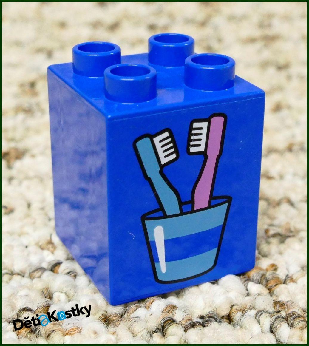 Jedná se o použité zboží! Duplo kostka 2x2x2 s obrázkem kelímku s kartáčky na zuby.