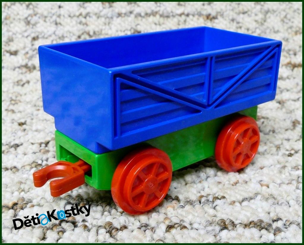 Jedná se o použité zboží!!! Vagon se zeleným podvozkem a modrou korbou. Za vagon lze připojit další vagony.