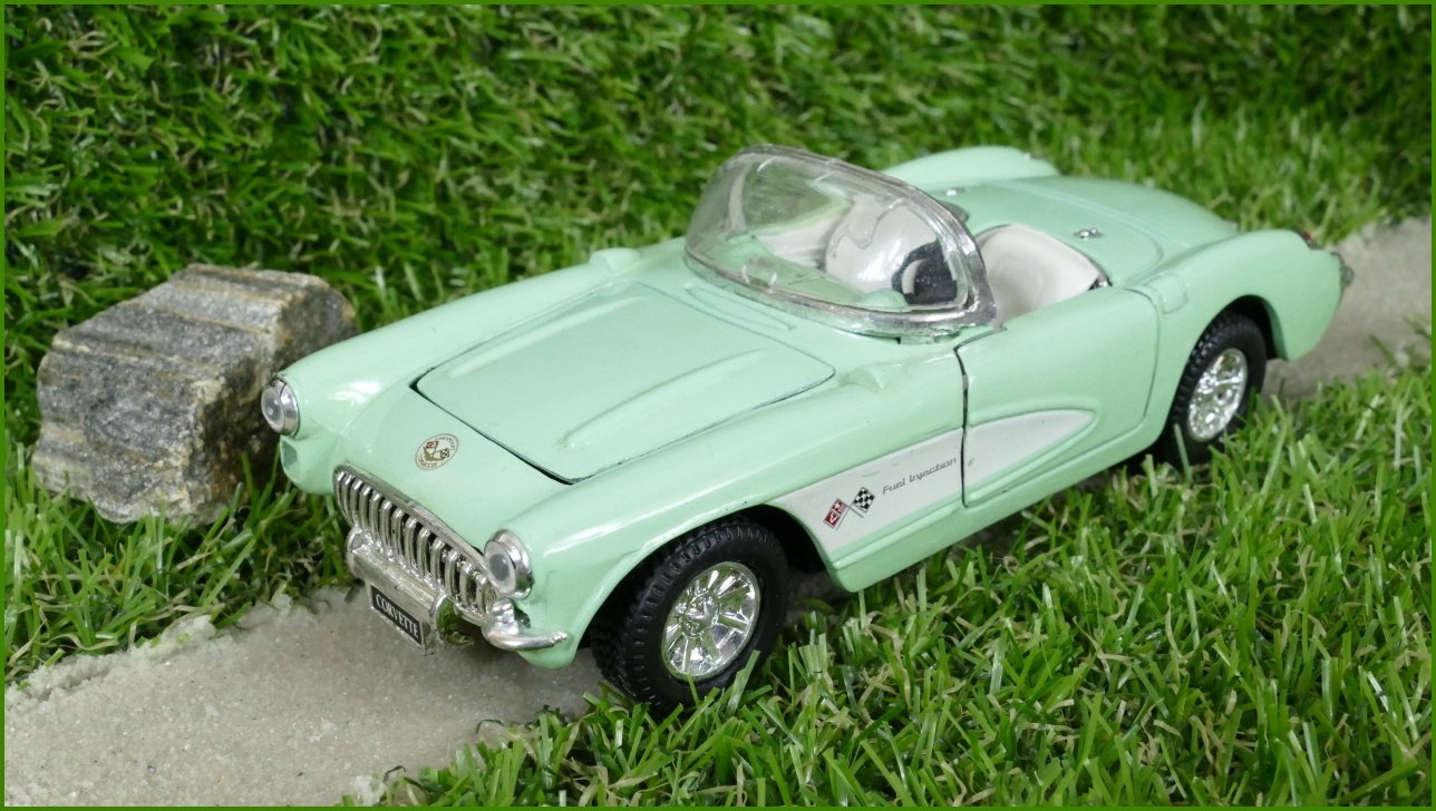 - Model Autíčka Sunnyside 1957 Corvette (SS 5709) - natahovací, chybí přední pravý nárazník, horší sklo.